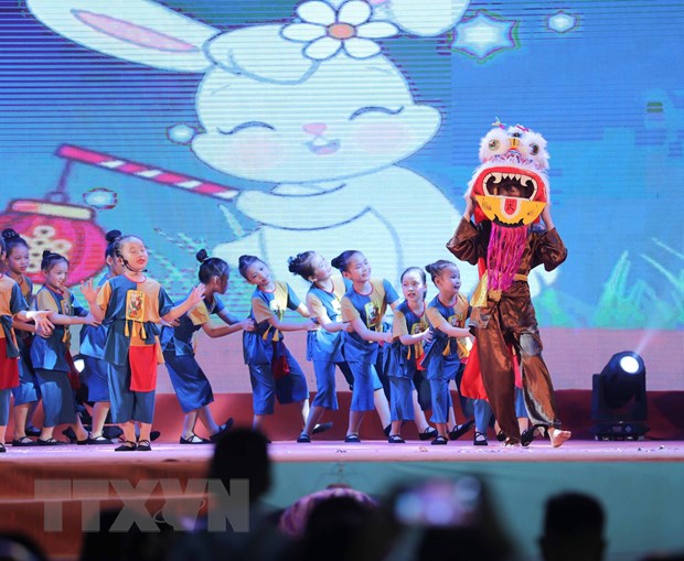 Tiết mục văn nghệ trong lễ khai mạc. “Bánh Trung thu và trái cây ba miền” Ảnh: Thanh Tùng/TTXVN |