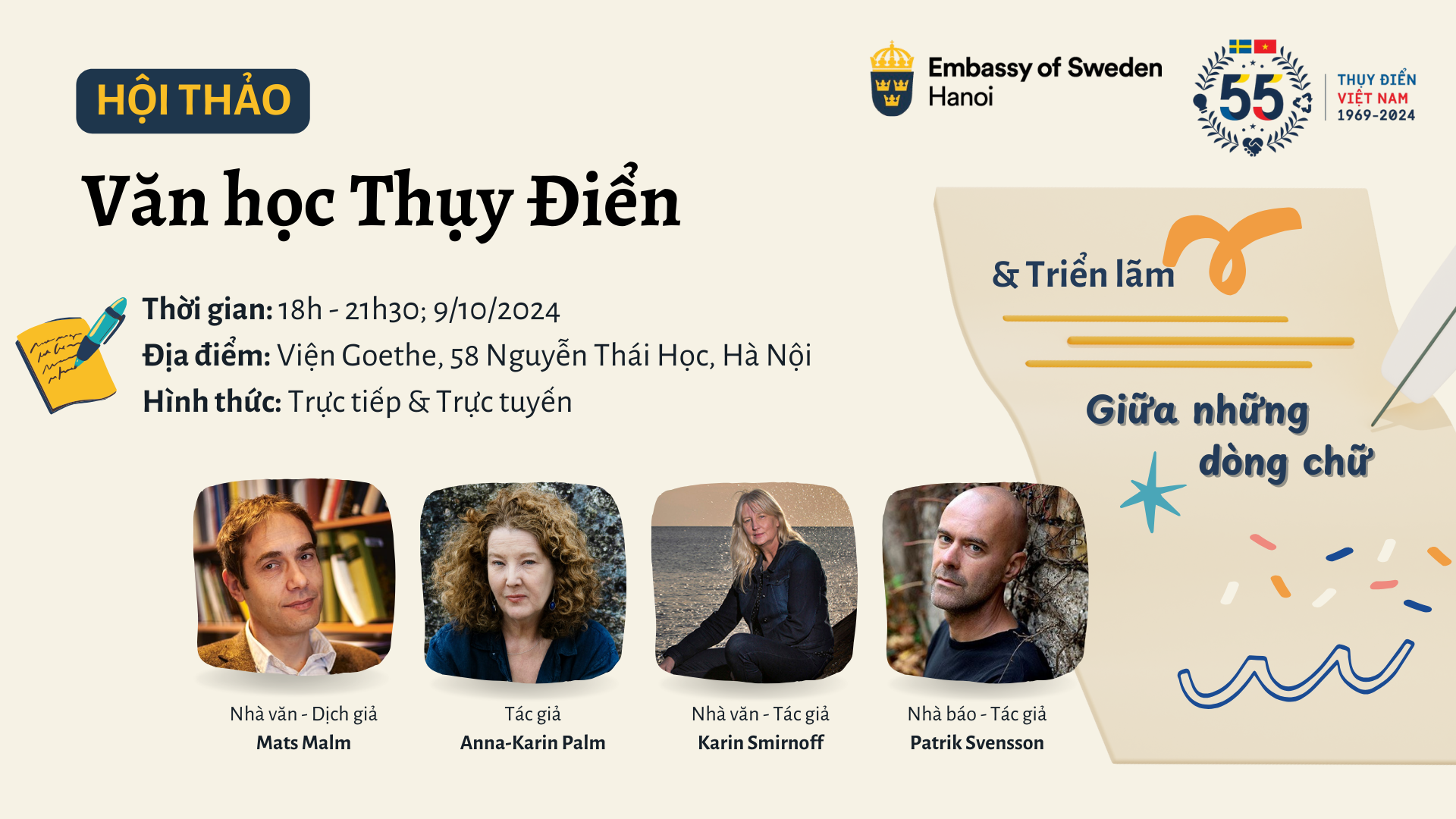 Hội thảo trong khuôn khổ những chương trình giao lưu văn chương giữa các tác giả Thụy Điển và độc giả, tác giả Việt Nam, do Đại sứ quán Thụy Điển tại Việt Nam tổ chức, nhân dịp kỷ niệm 55 năm quan hệ ngoại giao giữa Thụy Điển và Việt Nam (1969 -2024).