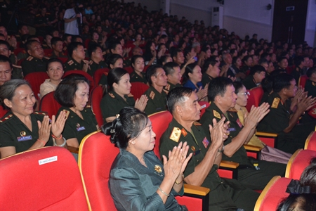 Hơn 1200 cán bộ, chiến sĩ và người dân Lào đến xem chương trình. Ảnh: vov |