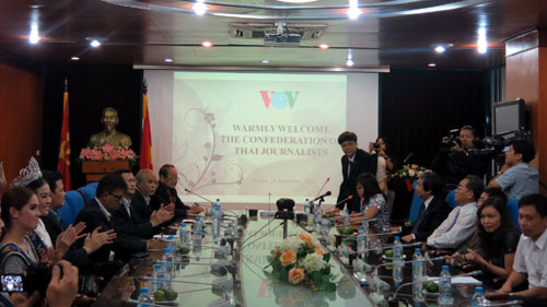 Phó Tổng Giám đốc VOV Vũ Hải nhiệt liệt chào mừng các nhà báo của Liên đoàn Báo chí Thái Lan cùng nhóm các Hoa hậu, Á hậu Thái Lan sang thăm VOV. Phó Tổng Giám đốc Vũ Hải đã giới thiệu với đoàn về VOV, trong đó khẳng định, VOV với truyền thống lịch sử 68 năm cùng với những quyết tâm và nỗ lực, ngày nay là cơ quan truyền thông quốc gia ở Việt Nam hội tụ 4 loại hình báo chí là phát thanh, truyền hình, báo viết và báo điện tử, tiếp tục khẳng định vai trò là một trong những cơ quan báo chí hàng đầu, có ảnh hưởng rộng và có uy tín ở trong nước và trong khu vực.