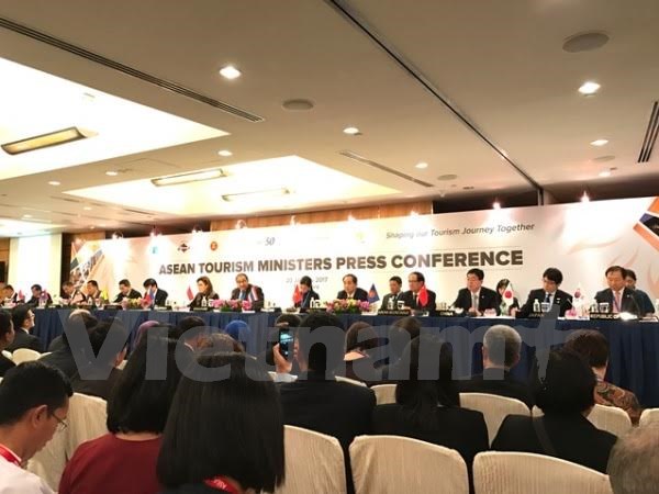 | Họp báo chung của các quốc gia tại Diễn đàn Du lịch ASEAN lần thứ 36 (ATF 2017), ngày 20/1, tại Singapore. (Ảnh: Mỹ Bình/Vietnam+) |