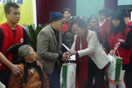 | Phó Chủ tịch nước Nguyễn Thị Doan "Tết vì người nghèo và nạn nhân chất độc da cam" tại huyện Vũ Thư, tỉnh Thái Bình. Ảnh: Trung Du. |