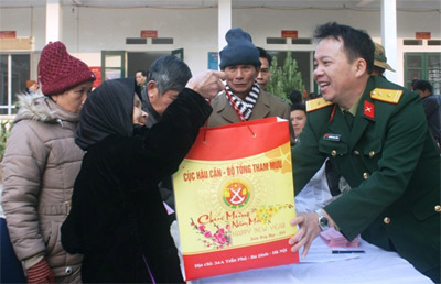 Cục Hậu cần quân đội trao quà tết ở xã Yên Bình (Thạch Thất, Hà Nội)