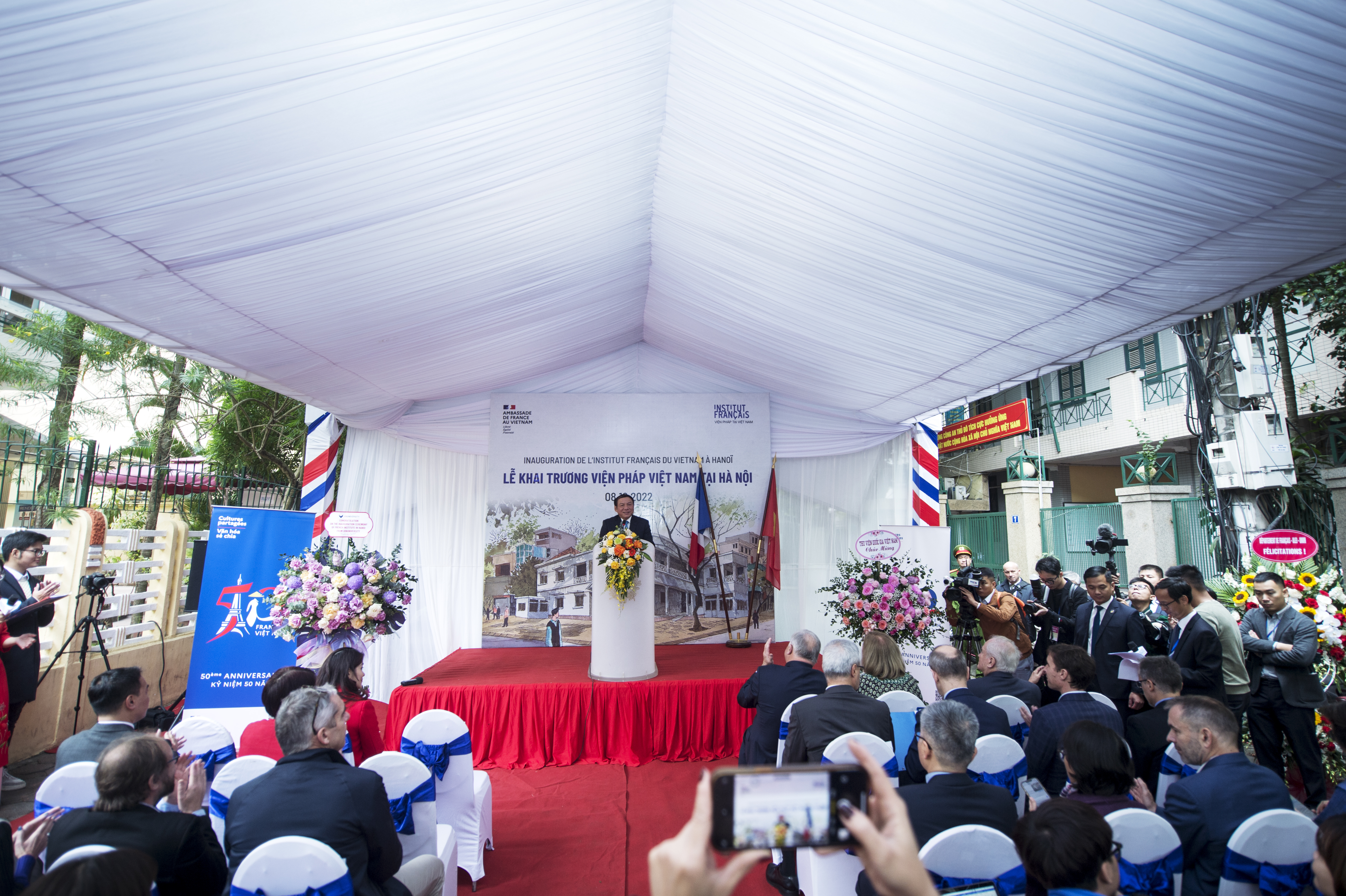 Phát biểu tại sự kiện, Bộ trưởng Bộ Văn hóa, Thể Thao và Du lịch Nguyễn Văn Hùng cho rằng: “Bộ Văn hóa, Thể thao và Du lịch đánh giá cao các hoạt động của Viện Pháp tại Hà Nội và các chi nhánh Viện Pháp tại Huế, Đà Nẵng và thành phố Hồ Chí Minh trong thời gian qua …Với chiến lược hoạt động mới đầy sáng tạo, các hoạt động của Viện Pháp tại Hà Nội là nơi đối thoại giữa các nền văn hóa, làm cầu nối để hai nước chúng ta xích lại gần nhau hơn.”