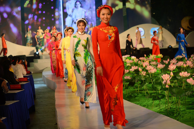 | Trình diễn áo dài trên phố đi bộ Nguyễn Huệ. Ảnh: Minh Trang/tuoitre.vn |
