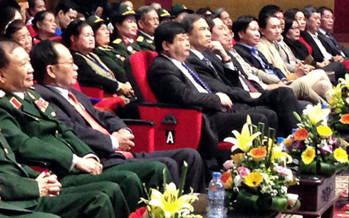 | Lãnh đạo Đài Tiếng nói Việt Nam cùng nhiều đại biểu có mặt trong đêm giao lưu nghệ thuật “Âm vang Trường Sơn”. |