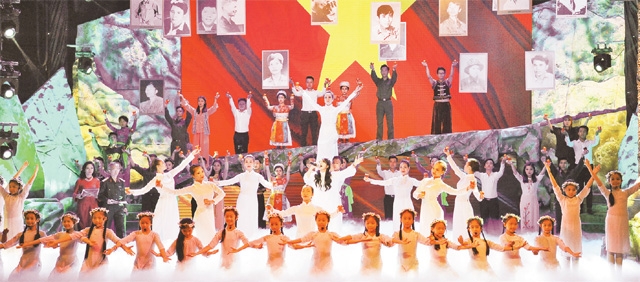 | Tiết mục văn nghệ trong chương trình “Tổ quốc mãi mãi ghi công”. Ảnh: TRẦN HẢI |