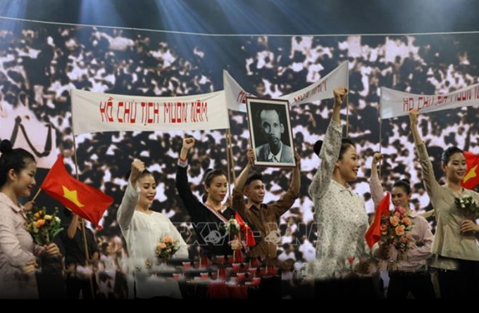 Chương trình biểu diễn đặc biệt mừng Quốc khánh 2/9: "Lời thề độc lập". Ảnh: Văn Điệp/TTXVN |