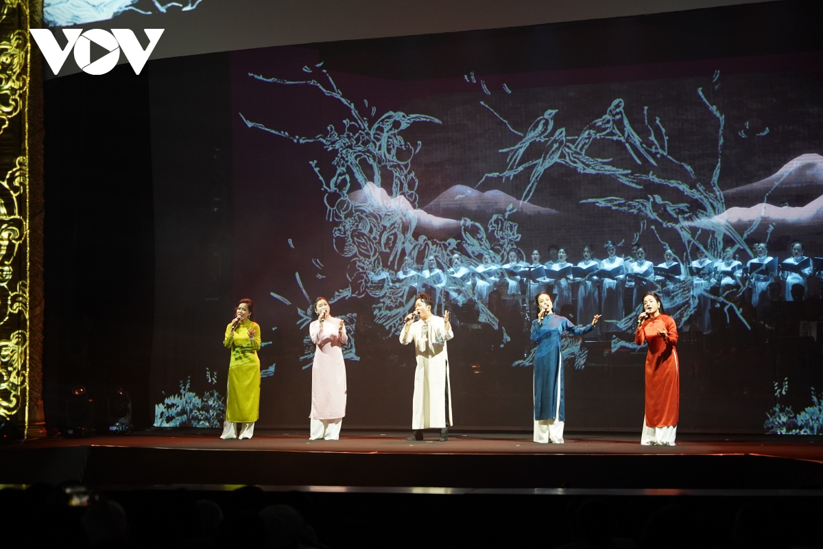 Chương trình “Đàn chim Việt” gồm tập hợp gần 20 tác phẩm nổi tiếng của nhạc sĩ Văn Cao như: “Thiên thai”, “Trương Chi”, “Làng tôi”, “Trường ca sông Lô”, “Tiến quân ca”, “Tiến về Hà Nội”.