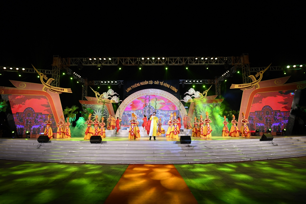 Trong khuôn khổ Giỗ tổ Hùng Vương - Lễ hội Đền Hùng năm 2021, tối 20/4, tại Thành phố Việt Trì, tỉnh Phú Thọ, diễn ra Chương trình Nghệ thuật “Linh thiêng nguồn cội - Đất Tổ Hùng Vương”.