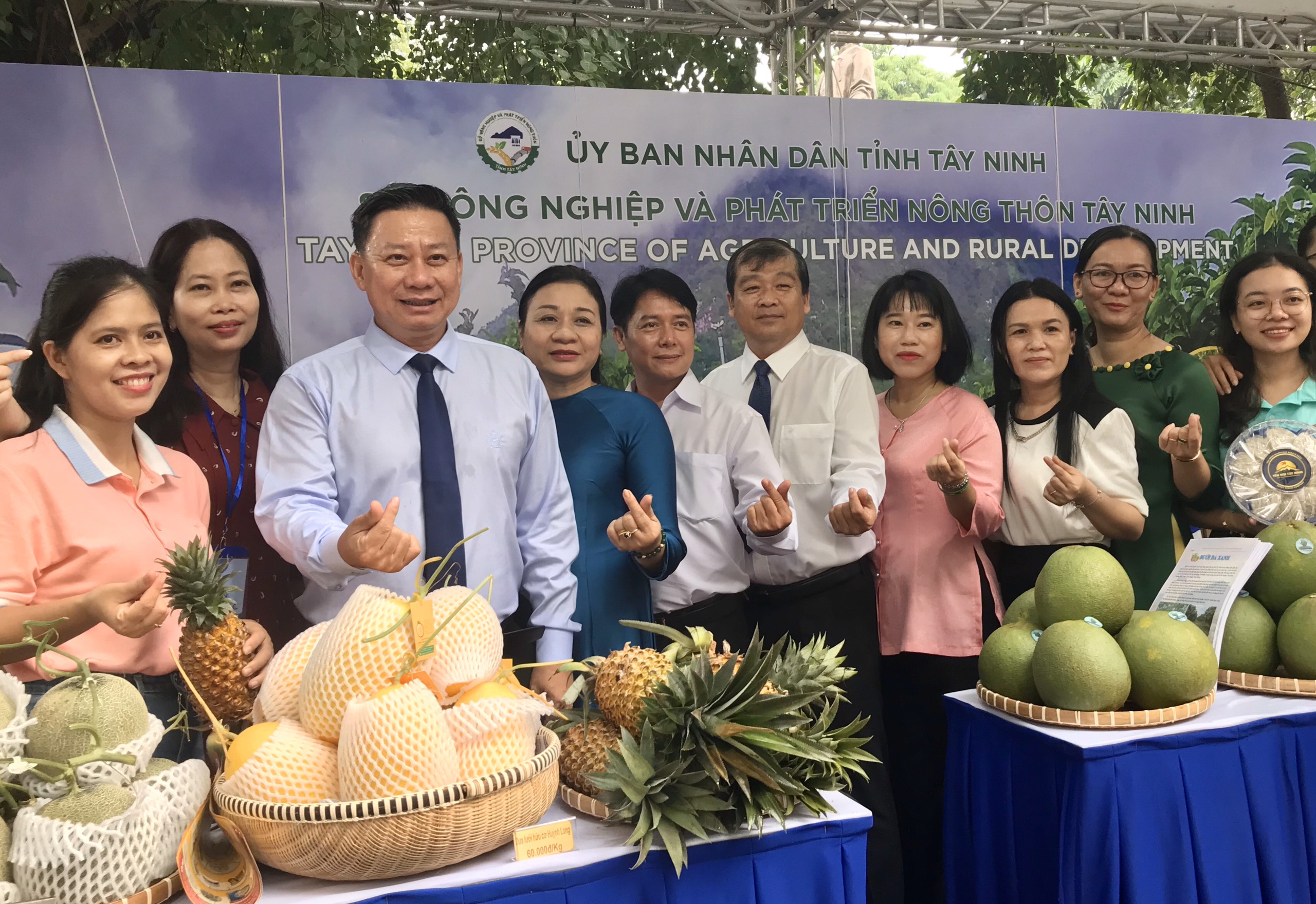 Ông Nguyễn Thanh Ngọc, Phó Bí thư Tỉnh ủy, Chủ tịch UBND tỉnh Tây Ninh, (thứ ba từ trái sang), chụp ảnh tại một gian hàng tại "Ngày Tây Ninh tại Hà Nội". |