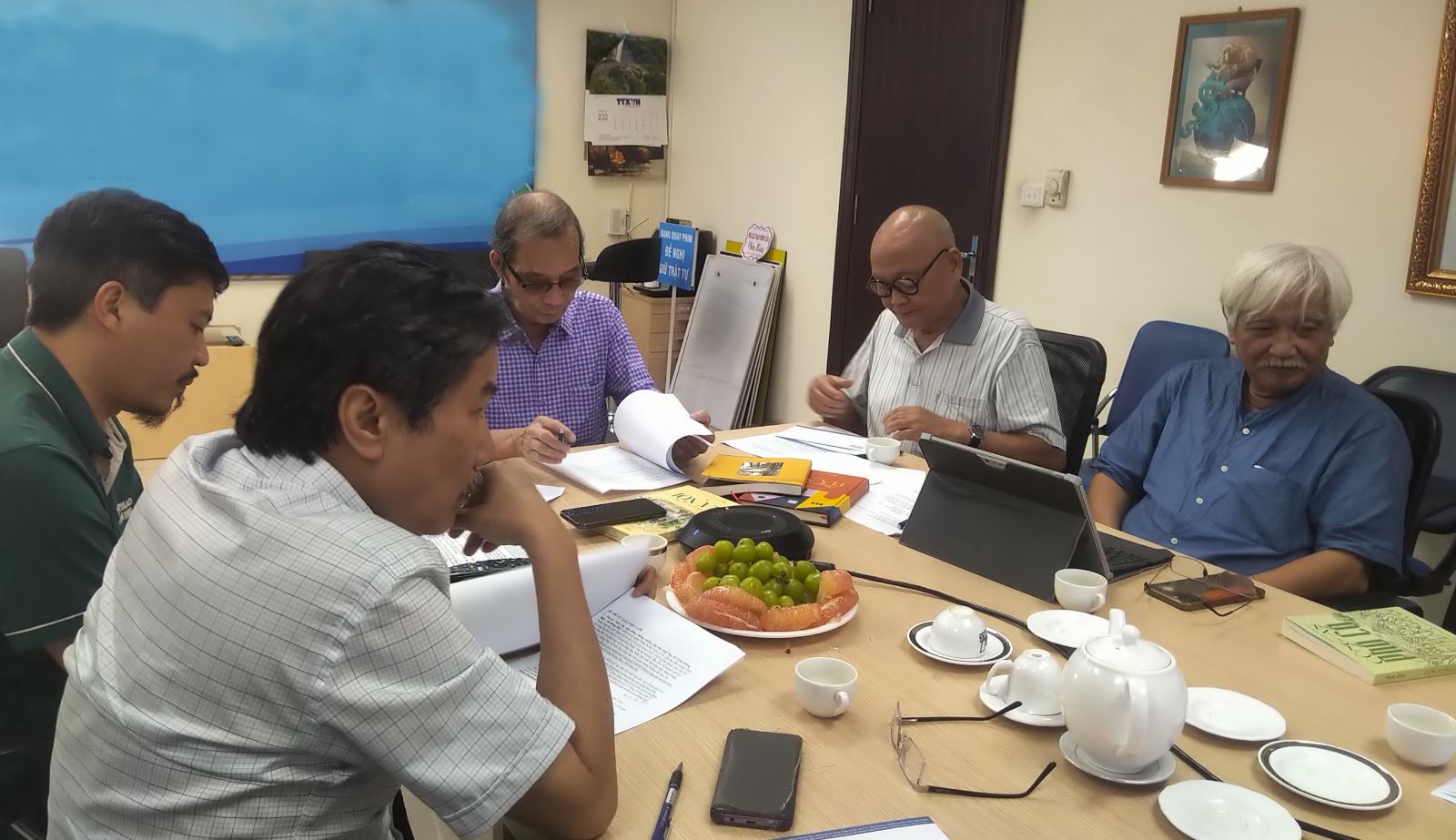 Hội đồng giám khảo Giải thưởng Bùi Xuân Phái họp phiên thứ 2. Ảnh: TTXVN |