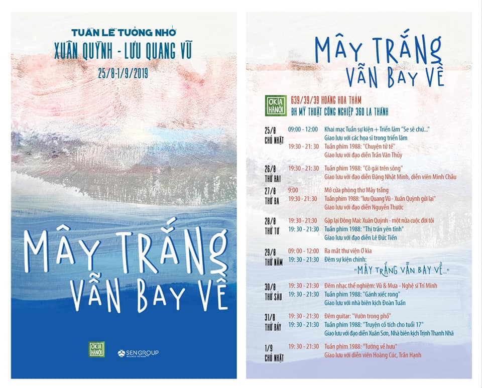 Những đoạn ghi âm tiếng nói của Lưu Quang Vũ – Xuân Quỳnh sẽ được công bố ngày 29/8 – trùng với ngày mất của hai cố nhà thơ tại đêm sự kiện chính "Mây trắng vẫn bay về".