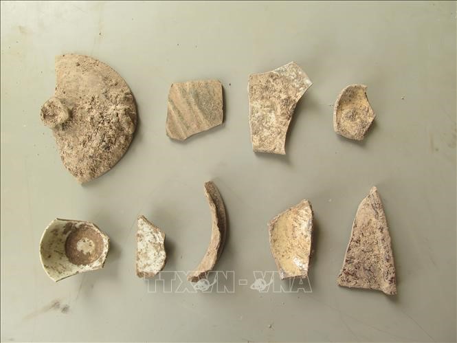 Các mảnh gốm sứ, chủ yếu thuộc thời kỳ Lê Mạc được các nhà khảo cổ phát hiện - Ảnh: Vũ Hoàng Giang/TTXVN |