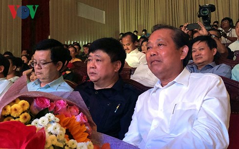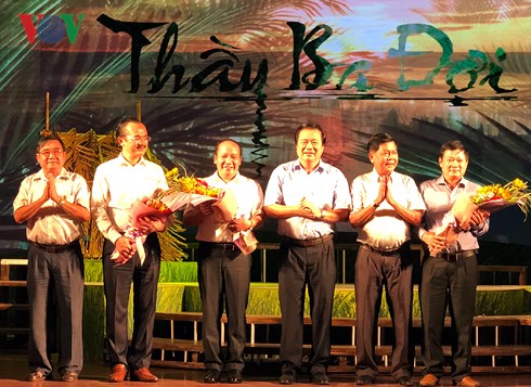| Lãnh đạo tỉnh Long An cùng đông đảo khán giả đến xem vở cải lương Thầy Ba Đợi. |