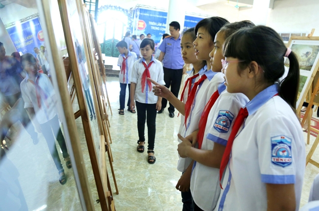 | Các em nhỏ tham quan triển lãm (Ảnh: Báo Nhân dân) |