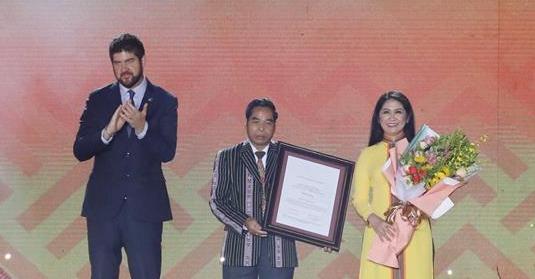 Ông Michael Croft, Trưởng đại diện UNESCO tại Việt Nam, trao tặng danh hiệu Công viên địa chất toàn cầu cho lãnh đạo tỉnh Đắk Nông. - Ảnh: Hưng Thịnh/ TTXVN |