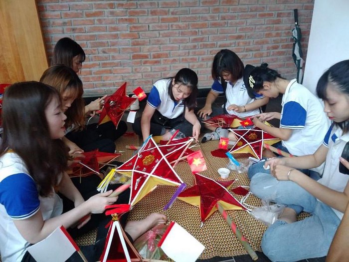 Các em học sinh tham gia trải nghiệm làm đèn ông sao - Ảnh: Bảo tàng Dân tộc học Việt Nam |