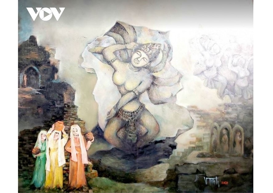 Tác phẩm (Mảnh ghép), tranh sơn dầu của tác giả Võ Văn Thanh Tịnh tham gia triển lãm "Hội tụ sắc màu" tại Bảo tàng Mỹ thuật Đà Nẵng. Ảnh: VOV |