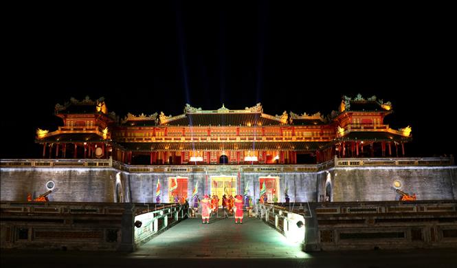 Trong khuôn khổ Tuần lễ Festival Huế 2022, tối 29/6, tại khu vực Ngọ Môn và điện Thái Hòa, Đại nội Huế, Trung tâm Bảo tồn Di tích Cố đô Huế tổ chức chương trình “Hoàng cung giao hòa”. Với sự kết hợp giữa truyền thống và hiện đại trong không gian Hoàng cung, chương trình thu hút đông đảo người dân và du khách.