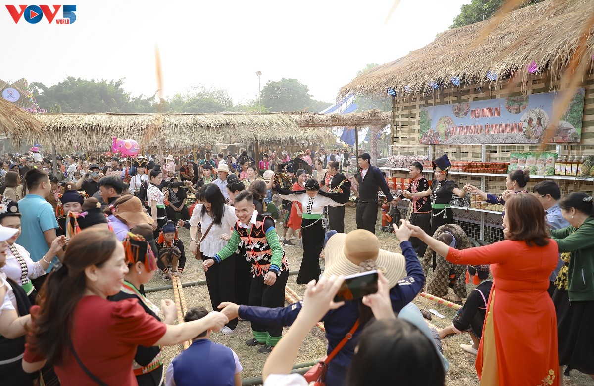 Không gian văn hoá vùng cao tái hiện sắc màu văn hóa, các hoạt động sinh hoạt cộng đồng của cộng đồng 19 dân tộc anh em đang sinh sống trên địa bàn tỉnh Điện Biên. Ảnh: Vũ Lợi/VOV |