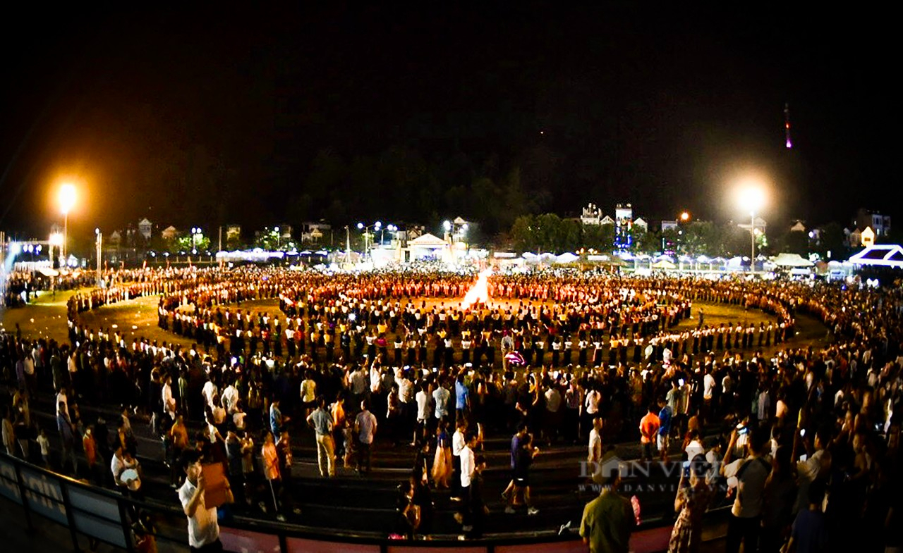 Đây là màn múa xòe lớn nhất đầu tiên được thực hiện tại huyện Than Uyên (Lai Châu). Ảnh: Phạm Hoài |