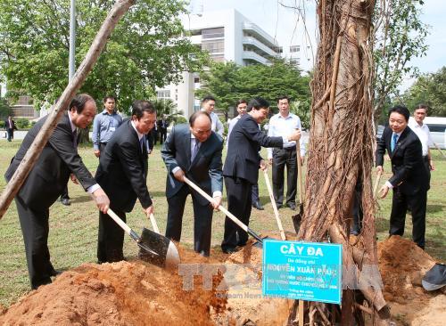| Thủ tướng Nguyễn Xuân Phúc trồng cây lưu niệm tại Trường Đại học Quốc gia Thành phố Hồ Chí Minh. - Ảnh:TTXVN |