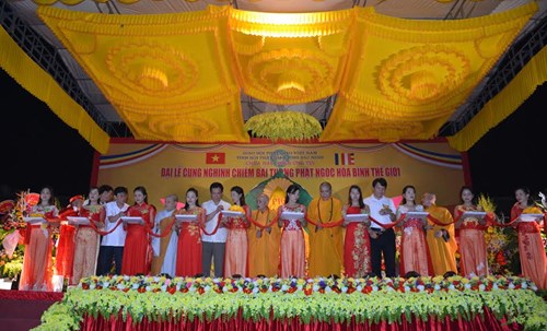 | Cắt băng khai quang Phật ngọc. Ảnh: qdnd.vn |