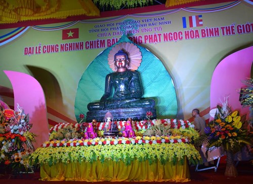 (VOV5) - Tối 25/8 (tức 23 tháng Bảy âm lịch), tại chùa Dâu (Diên Ứng tự), Tỉnh hội Phật giáo Bắc Ninh tổ chức Đại lễ cung nghinh tượng Phật ngọc hòa bình thế giới.