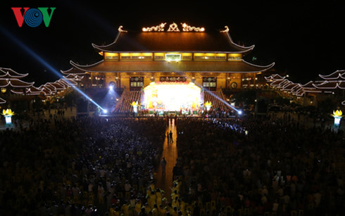 (VOV5) - Tối 13/5, bảo tượng Phật ngọc hòa bình thế giới được cung nghinh an vị chùa Ba Vàng, Thành phố Uông Bí, Tỉnh Quảng Ninh.