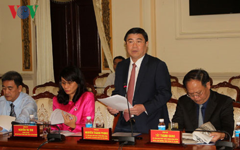 | Ông Nguyễn Thành Phong, Chủ tịch UBND TPHCM phát biểu ý kiến |