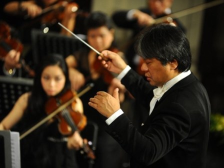 | Nhạc trưởng Honna Tetsuji - Nhật Bản chỉ huy dàn nhạc. Ảnh: Hội Nhạc sỹ Việt Nam |