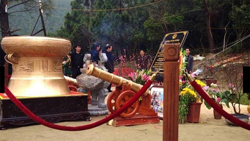 Các linh khí trống đồng, súng thần công và kiếm lệnh đã được dâng lên anh linh Đại tướng.
