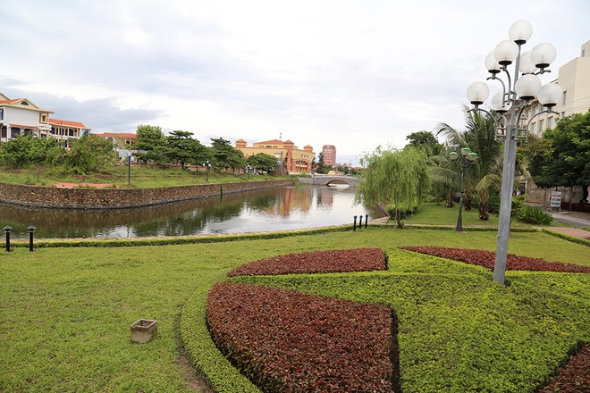 Bên ngoài hào đoạn phía Nam và Đông được trồng cỏ xanh mướt, trở thành công viên xanh. Những phía còn lại, nhà cửa mọc lên san sát, cho thấy sức sống của một đô thị trẻ.