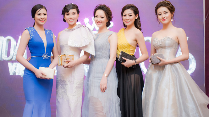 | Từ trái sang: Hoa hậu Ngọc Hân, Kỳ Duyên, Á hậu Thụy Vân, Tú Anh, Huyền My. Ảnh:thanhnien.vn |