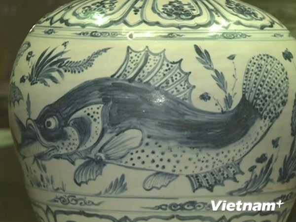| Hoa văn độc đáo trên một bình sứ cổ xanh-trắng của Việt Nam. (Ảnh: Việt Hải-Lê Hải/Vietnam+) |