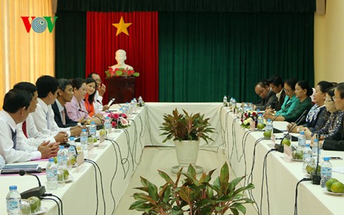 | Lãnh đạo tỉnh Sóc Trăng làm việc với đoàn Nghệ thuật Campuchia. Ảnh: thdt.vn |