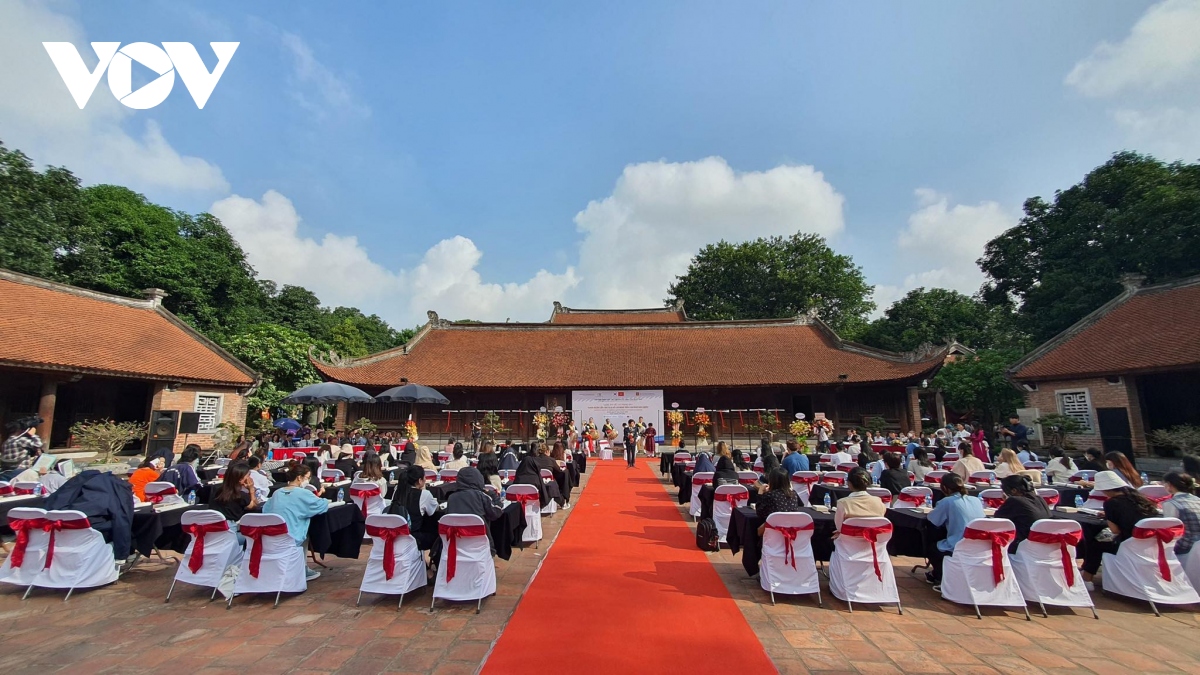 Toàn cảnh cuộc thi viết và trưng bày “Danh ngôn của Chủ tịch Hồ Chí Minh trên thư pháp Hàn Quốc” tại Văn Miếu - Quốc Tử Giám. Ảnh: VOV |
