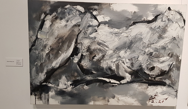Họa sĩ Nguyễn Vân Chung mang đến những bức tranh trừu tượng, tối giản đến mức quyết liệt. Tranh biểu hình của họa sĩ Doãn Hoàng Lâm với ngôn ngữ biểu hiện cảm xúc mãnh liệt. Tranh của họa sĩ Tào Linh kiệm màu, kiệm hình, nhưng lạ bởi bố cục thách thức các nguyên tắc cơ bản nhưng thực tế lại đầy cân nhắc và logic.