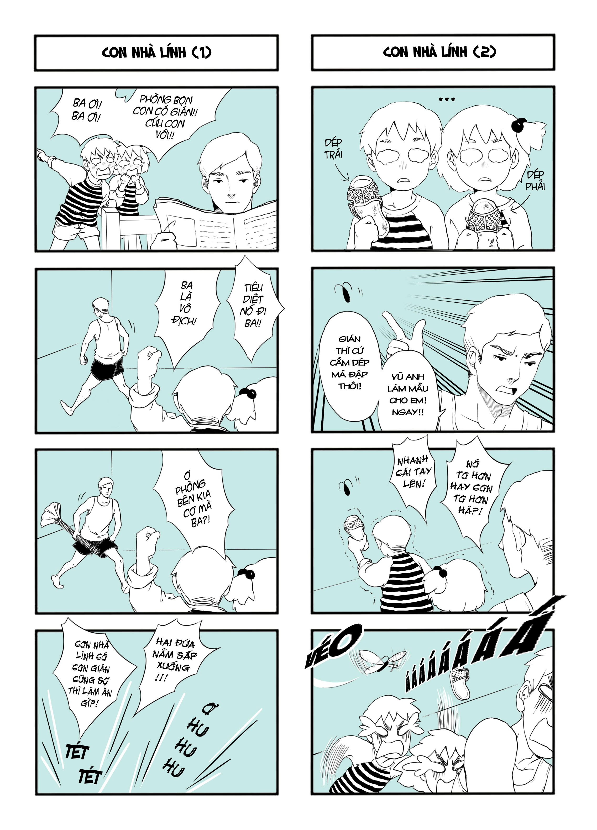 Dù được nuôi dạy rất nghiêm khắc theo tiêu chuẩn “con nhà lính”, Vũ Anh và Vy Anh cũng vẫn là những đứa trẻ nghịch ngợm, hồn nhiên và vụng dại. Hai anh em đã gặp phải không ít những rắc rối, nhiều lần mắc lỗi, để rồi phải chịu “kỉ luật thép” của ông bố quân nhân. Chính những tình huống hài hước, dễ thương, khơi gợi tuổi thơ của bộ truyện đã tạo được sự đồng cảm với nhiều độc giả, cùng gặp lại biết bao niềm vui ấu thơ giản dị, những nỗi buồn vu vơ, và cả những bài học đầu đời trên hành trình lớn khôn, trưởng thành.