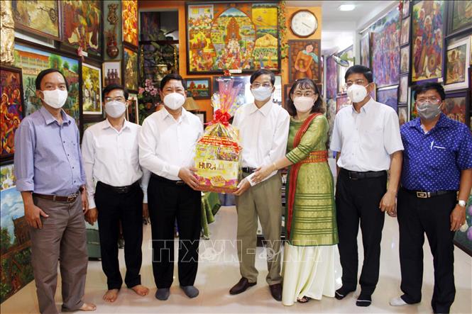 Lãnh đạo UBND tỉnh Ninh Thuận thăm chúc Tết các nhân sĩ trí thức đồng bào Chăm ở xã Xuân Hải, huyện Ninh Hải. Ảnh: TTXVN |