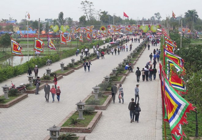 | Du khách tham quan trên trục Thần Đạo - lối đi vào Khu di tích đền Trần Thái Bình. (Ảnh: TTXVN) |