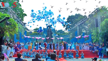 | Màn thả chim bồ câu và thả bóng bay thể hiện ước nguyện của nhân dân Việt Nam về một hòa bình. Ảnh: Đức Anh |
