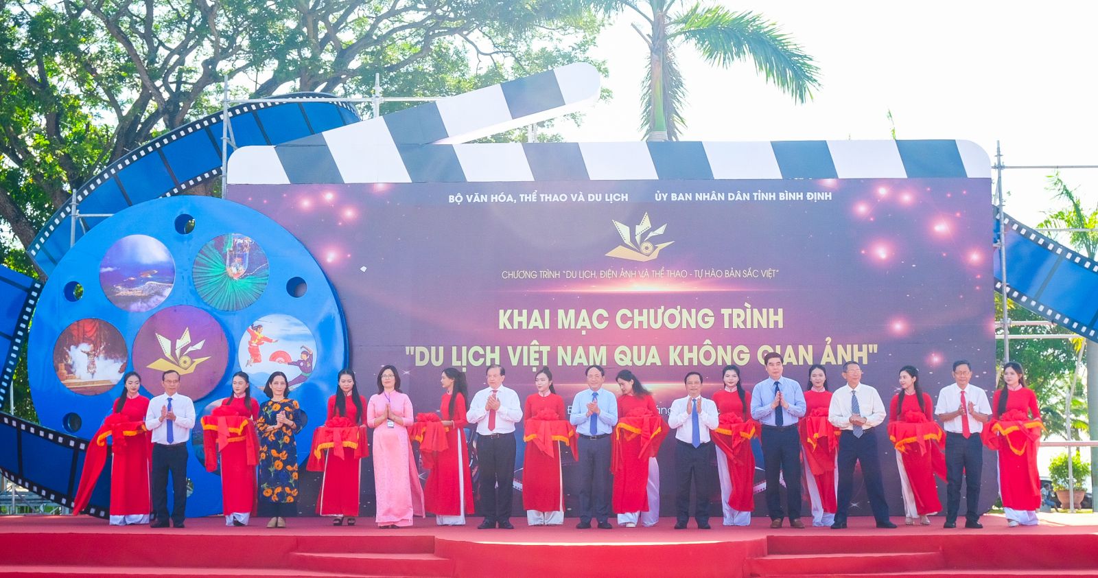 Các đại biểu cắt băng khai mạc chương trình. Ảnh: binhdinh.gov.vn |