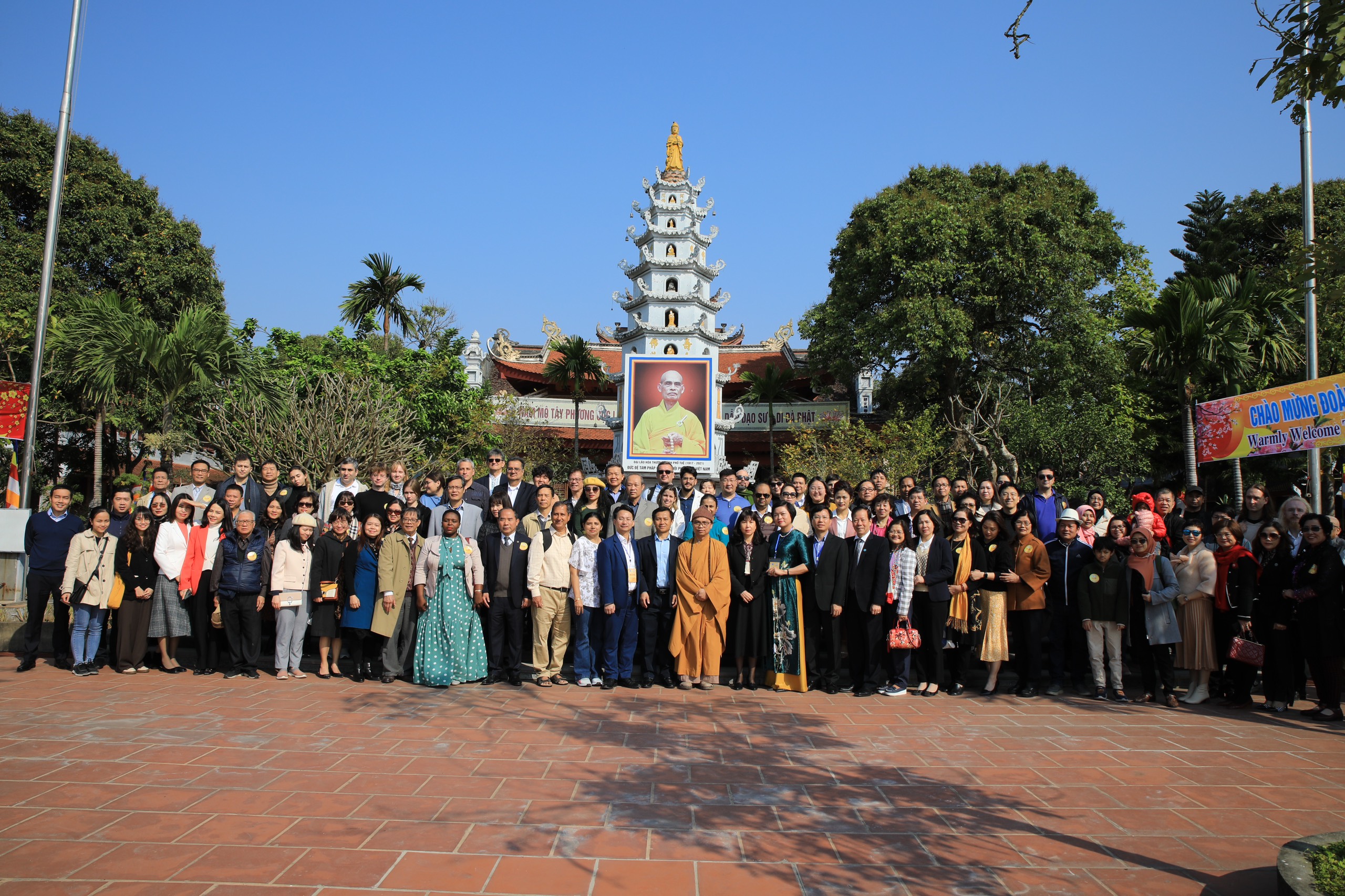 Chụp ảnh lưu niệm tại Chùa Ráng (tên chữ Viên Minh Tự) - nơi cố Đức pháp chủ giáo hội Phật giáo Việt Nam Thích Phổ Tuệ dành cả đời tu hành. |
