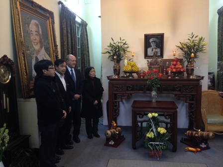 | Giáo sư Larry Berman bên bàn thờ Đại tướng Võ Nguyên Giáp |