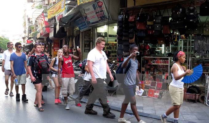 | Khách du lịch quốc tế tham quan phố phường Hà Nội. Ảnh: TTXVN |