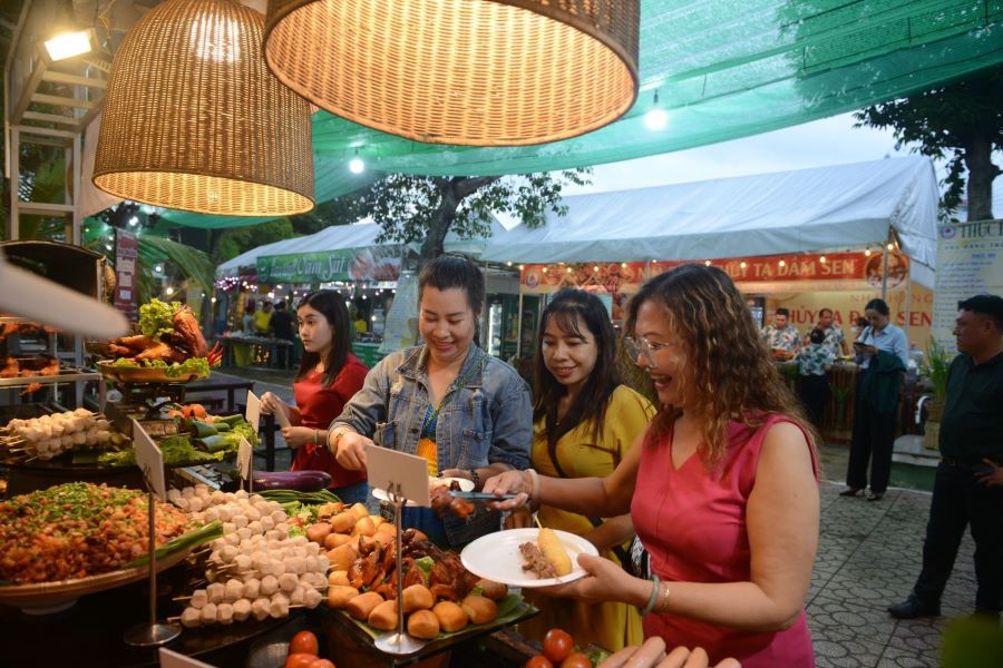 Khách tham quan thưởng thức các món ăn tại liên hoan - Ảnh: Mạnh Linh/Báo Tin tức |