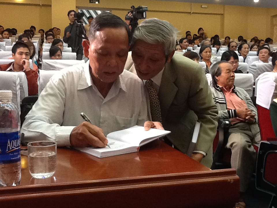 | Trung tướng Nguyễn Việt Thành ký tặng sách cho một độc giả. |