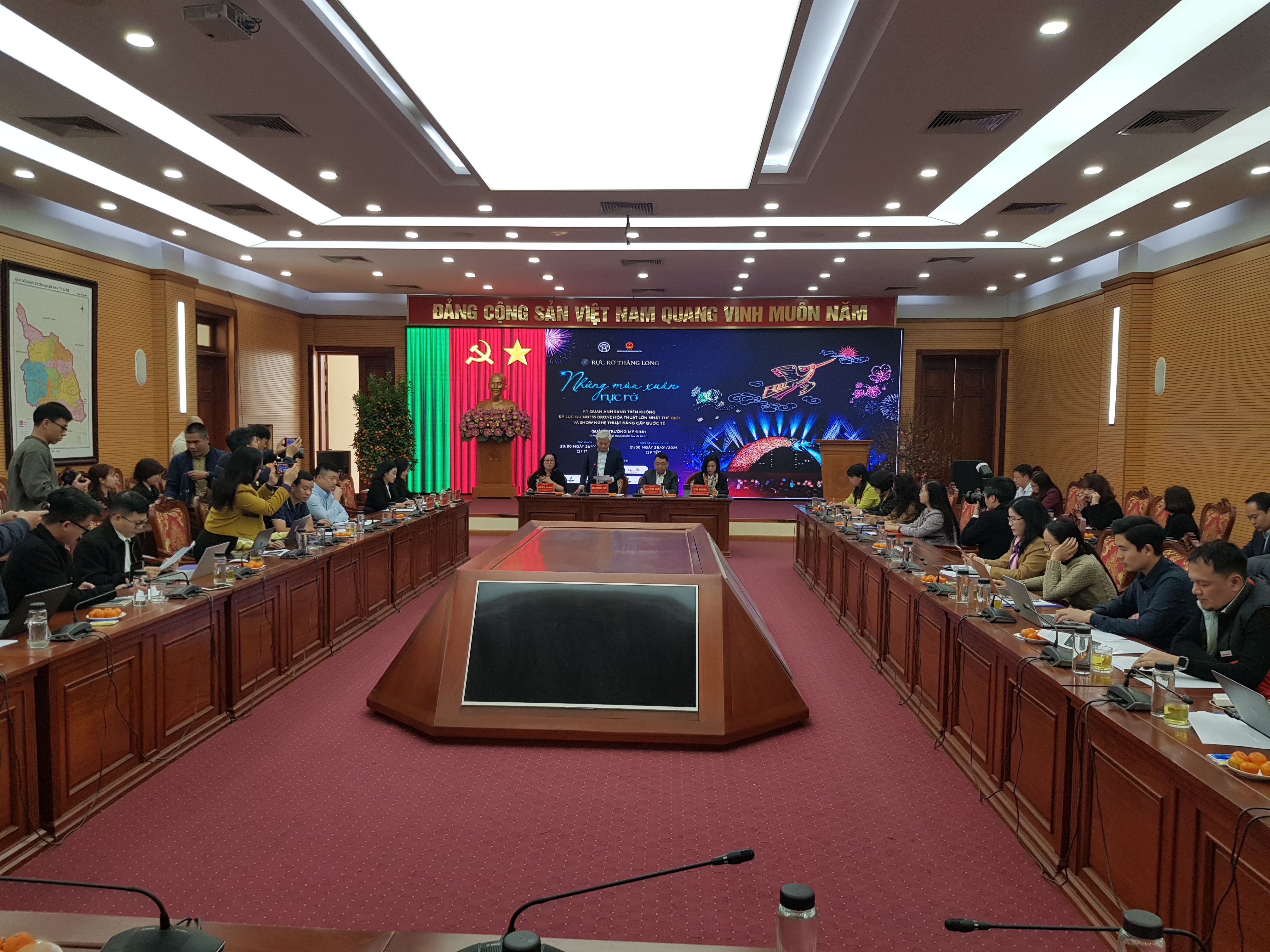 Tại cuộc họp báo chiều 20/1 ở Hà Nội, ông Mai Trọng Thái, Chủ tịch Ủy ban nhân dân quận Nam Từ Liêm, cho biết: "Với chủ đề “Những mùa xuân rực rỡ”, chương trình nghệ thuật “Rực rỡ Thăng Long 2025” sẽ kể những câu chuyện đầy cảm hứng về mùa Xuân. Đó là những mùa xuân lịch sử của dân tộc, của đất nước, con người Hà Nội và Việt Nam. Trong chương trình, khán giả Thủ đô cũng sẽ được thưởng thức chương trình nghệ thuật tương tác độc đáo, kết hợp đa thể loại trình diễn, hòa quyện giữa truyền thống và hiện đại, mang đậm dấu ấn văn hóa Thăng Long - Hà Nội. Tiếp đó là màn trình diễn của 2025 drone hỏa thuật thắp sáng bầu trời Thủ đô. Đây là loại hình trình diễn thiết bị bay không người lái hiện đại, kết hợp giữa trình diễn công nghệ ánh sáng (drone light) và pháo sáng nghệ thuật với các hiệu ứng đặc biệt, như: nhấp nháy, thác nước, phun sáng…, hứa hẹn sẽ tạo ra những khoảnh khắc ấn tượng và đặc biệt với khán giả. Ngay sau màn trình diễn drone hỏa thuật sẽ là màn bắn pháo hoa tầm cao vào đúng khoảnh khắc giao thừa để đón chào năm mới Ất Tỵ 2025."